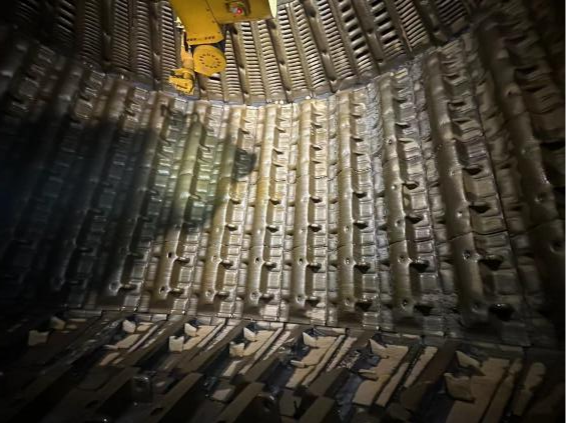 近期生產(chǎn)的新型耐磨金屬筒體襯板在國(guó)外某大型礦山φ9.75X4.88m半自磨機(jī)上試用成功,使用壽命達(dá)4個(gè)半月,與現(xiàn)場(chǎng)原國(guó)際一線品牌相同,達(dá)到客戶預(yù)期目標(biāo)。襯板是用來(lái)保護(hù)磨機(jī)筒體,使筒體免受研磨體和物料的直接沖擊的重要備件。目前,磨機(jī)、半自磨機(jī)金屬襯板大多采用鑄造鉻鉬鋼等材料,如果生產(chǎn)過(guò)程控制不好,在使用過(guò)程中,襯板容易斷裂,造成磨機(jī)的非正常停機(jī)等問(wèn)題。