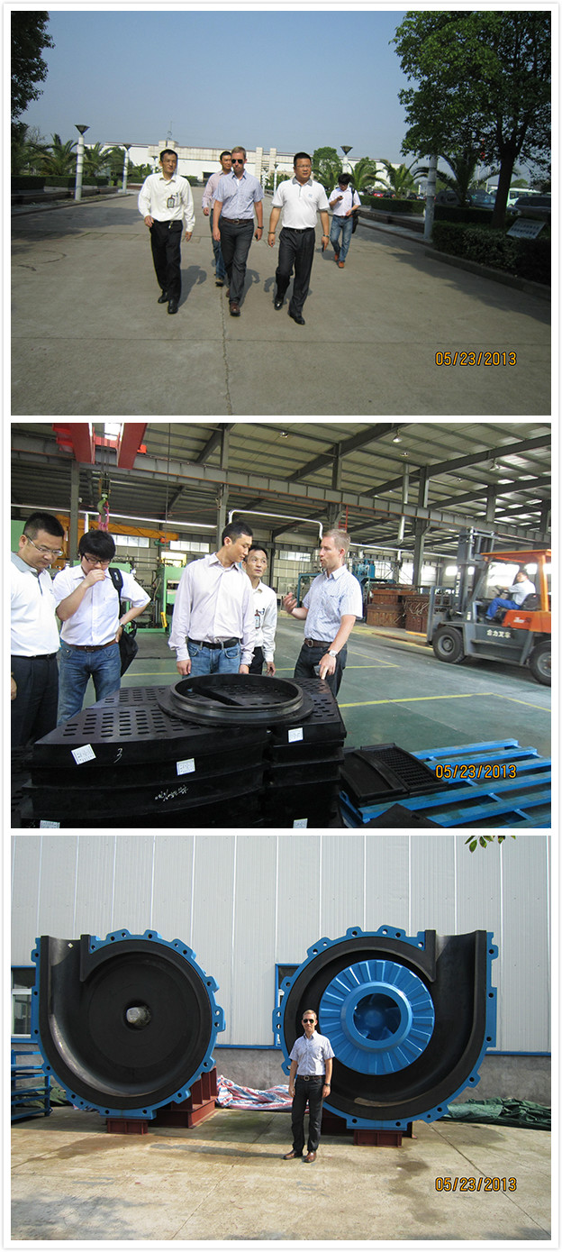 早上8時許,安德斯先生在我司總經(jīng)理程勝陪同下,對我司質(zhì)量檢測控制中心、泵業(yè)分廠、橡膠制品分廠、機械制造分廠、煉膠車間均進行了考察,并詳細詢問各種產(chǎn)品的生產(chǎn)制造過程。來到我司產(chǎn)品550渣漿泵一旁時,安德斯先生還饒有興致地與渣漿泵一起合影。經(jīng)過詳細的考察,安德斯先生對我司廠區(qū)面貌、現(xiàn)場管理、質(zhì)量控制、研發(fā)能力均給予了高度評價,并將我司列為合格供應商,下步將進入產(chǎn)品試用階段。此次考察為我司與力礦公司達成戰(zhàn)略合作伙伴關(guān)系提供了良好的契機。