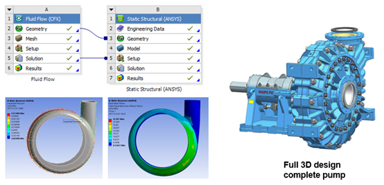 應(yīng)用了FLUENT技術(shù)和EDEM技術(shù)對(duì)葉輪、護(hù)套等進(jìn)行了充分優(yōu)化,以獲得高效率,并克服局部磨損,三維建模采用UG。